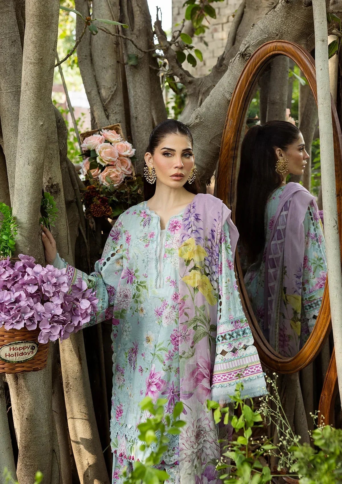 Summary: The Elaf Prints Lawn ECD-3B FLORAL CHARM is a beautiful unstitched 3-piece Pakistani suit designed for women who appreciate comfort and style. Crafted from premium lawn fabric, the teal shirt features a delicate floral print that exudes a refreshing summer vibe. This lightweight and breathable material ensures comfort throughout the day. The shirt comes with digitally printed lawn for the front, back, and sleeves (1.17 meters each for front and back, 0.65 meters for sleeves). The outfit is complemented by a gracefully flowing chiffon dupatta with a coordinating floral pattern, adding a touch of elegance to the ensemble. It measures 2.5 meters. The suit also includes 2.5 meters of digitally printed cambric trouser fabric to complete the traditional silhouette. This versatile design makes it ideal for daily wear during the spring/summer season, capturing a timeless charm that transcends seasonal trends. Please note that actual product colors may vary slightly from what you see on your screen due to differences in device displays. The Elaf Prints with Chiffon Dupatta collection embodies subtle sophistication, premium quality fabrics, and attention to detail.