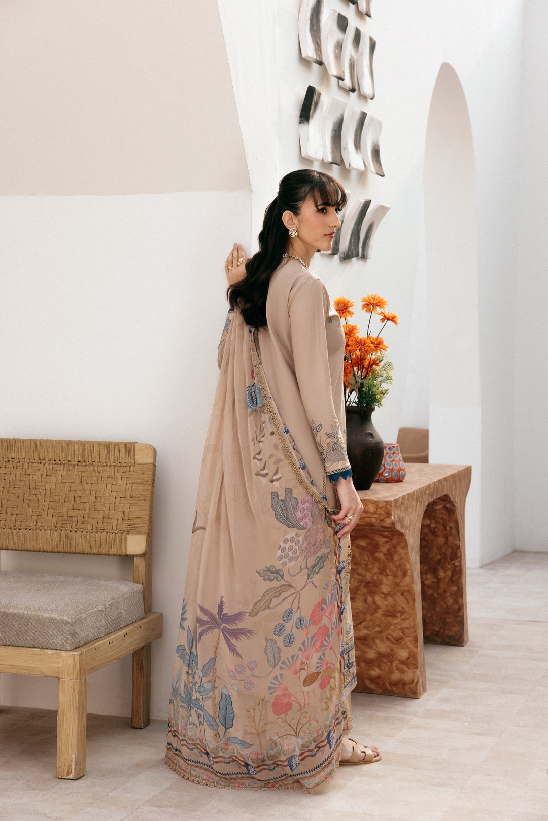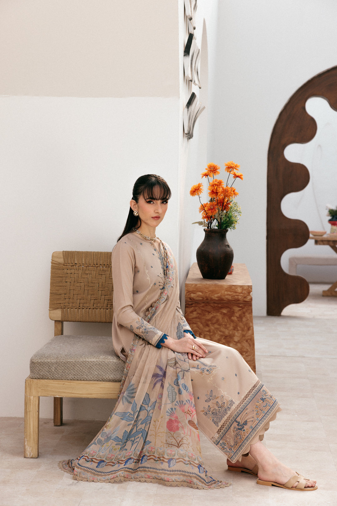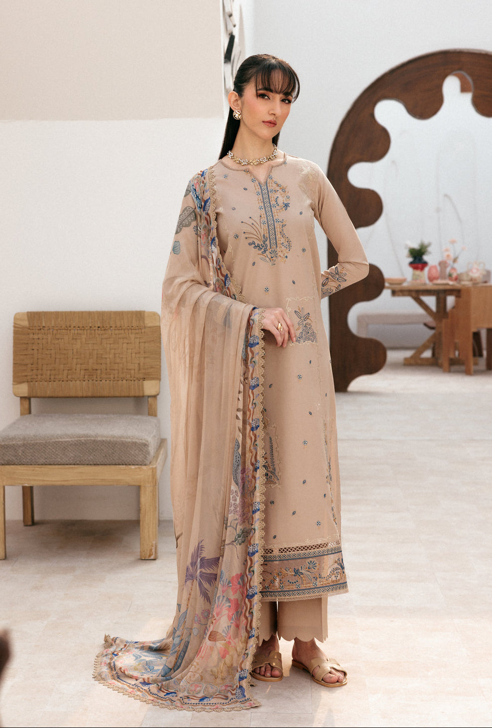 Summary: Embrace timeless elegance with this exquisite Beige Pakistani Suit from the Florent Summer Lawn collection. This unstitched dress material features a beautifully embroidered Lawn kameez, showcasing intricate craftsmanship on the front and sleeves. As a classic Pakistani Lawn Dress, its lightweight and breathable fabric is perfect for the Spring/Summer heat, ensuring both comfort and style. The sophisticated beige hue makes this ethnic wear outfit incredibly versatile for various formal events. This festive clothing is an ideal choice for Eid celebrations, summer parties, or any daytime formal gathering where you want to make a graceful statement.
