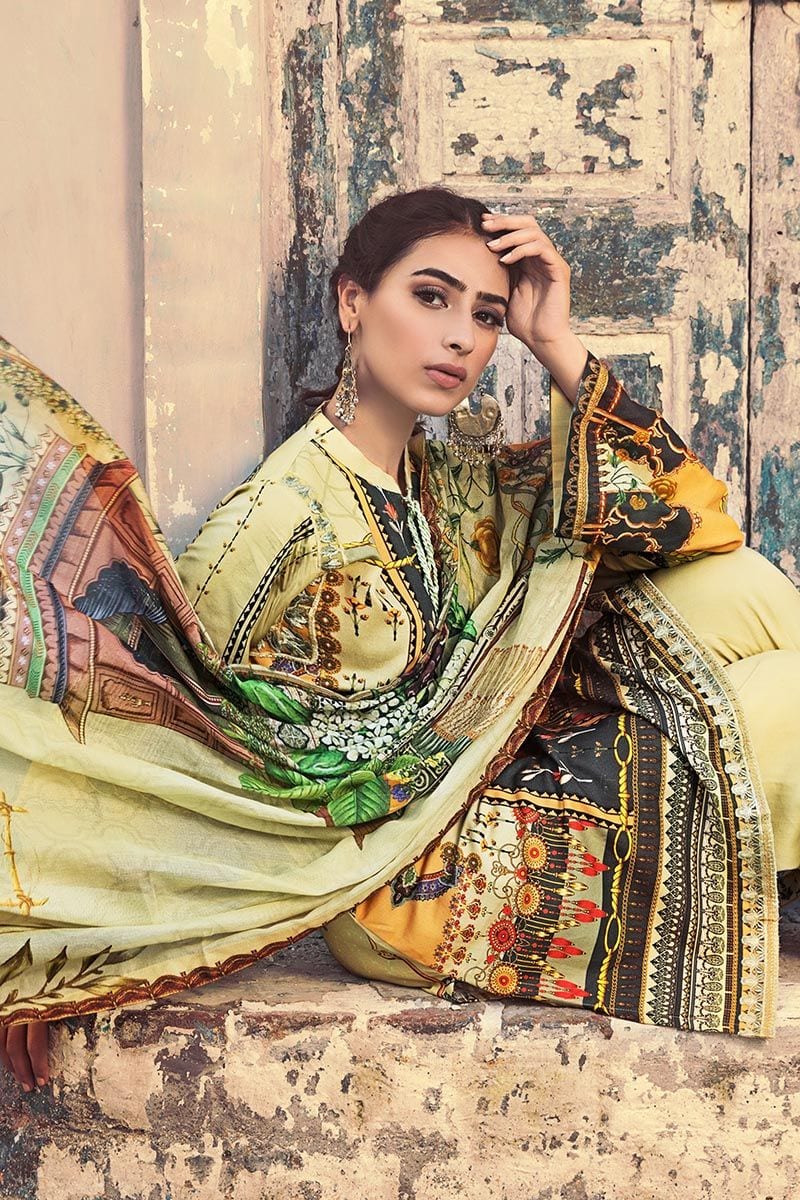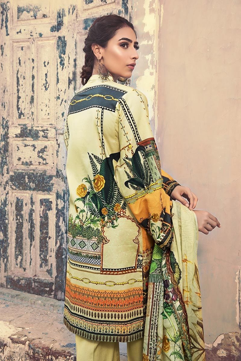 Fabric: Digital Printed Cotton Net Dupatta – 2.5 meters Embroidered Digital Printed Corduroy Front, Digital Printed Back & Sleeves with Embroidered Border on Organza – 1.75 meters Dyed Bamboo Corduroy Trouser – 1.75 meters |