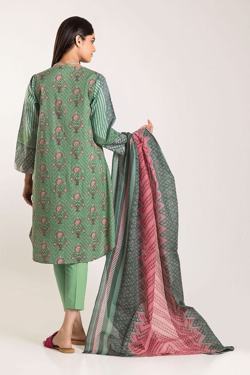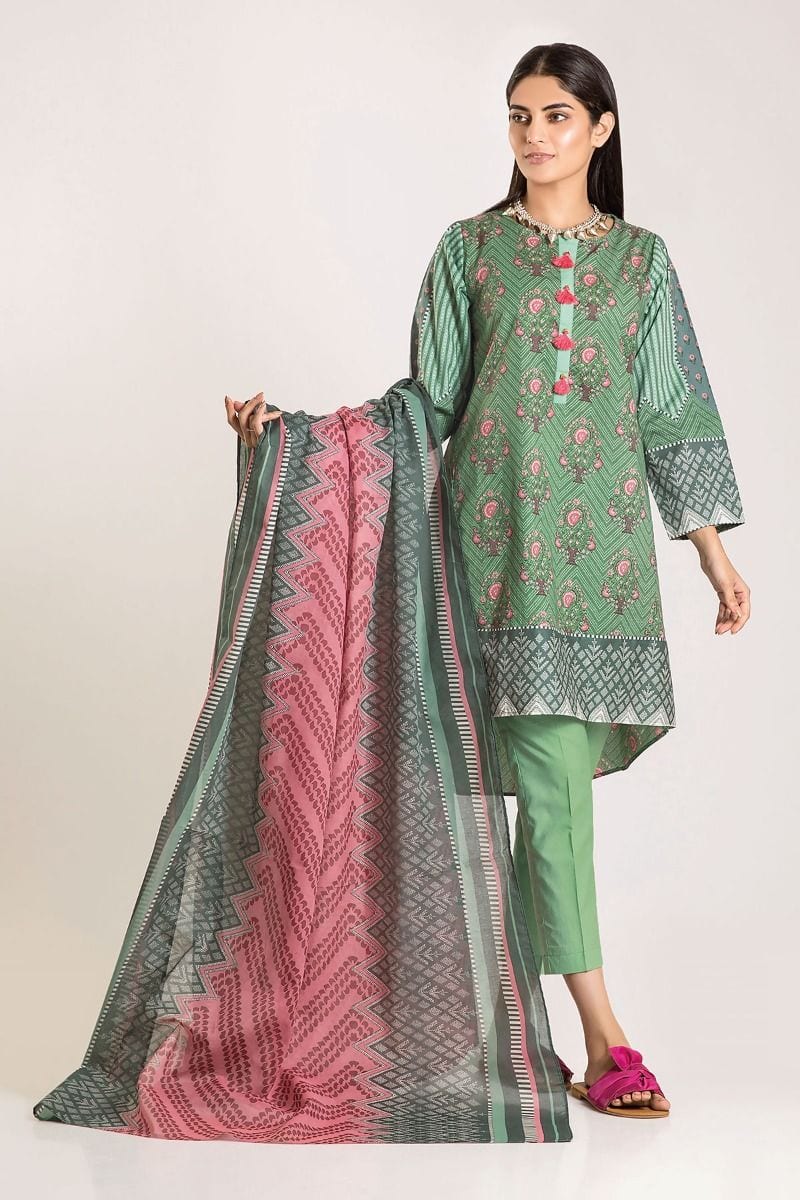 Fabric: Front & Back Cambric Printed 2.5m Sleeve Cambric Printed 0.5m Printed Dupatta 2.5m Shalwar 2.5m Material: Cambric Color: Green |