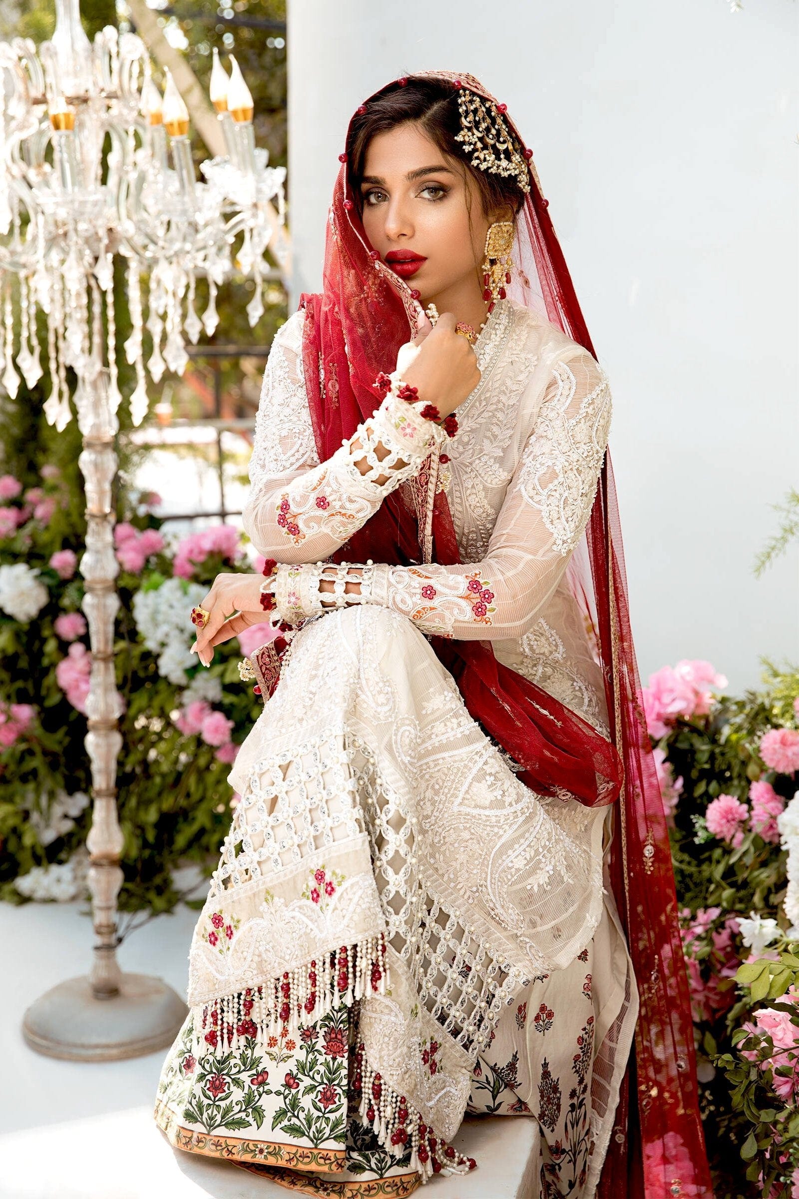 Fabric: Embroidered Organza Neckline Embroidered Organza Neck Lace With Pearl Work Embroidered Organza Line Karandi Front Embroidered Organza Line Karandi Sleeves Embroidered Organza Sleeve Patti-1 Embroidered Velvet Sleeve Patti-2 Embroidered Organza Ghera Lace-1 With Pearl Front Embroidered Organza Ghera Lace-1 Back Embroidered Velvet Ghera Lace-2 Front & Back Organza Line Karandi Back Embroidered Net Dupatta Embroidered Raw Silk Dupatta Lace Dyed cotton satin undershirt, Digital printed cotton satin dhaka pajama. |