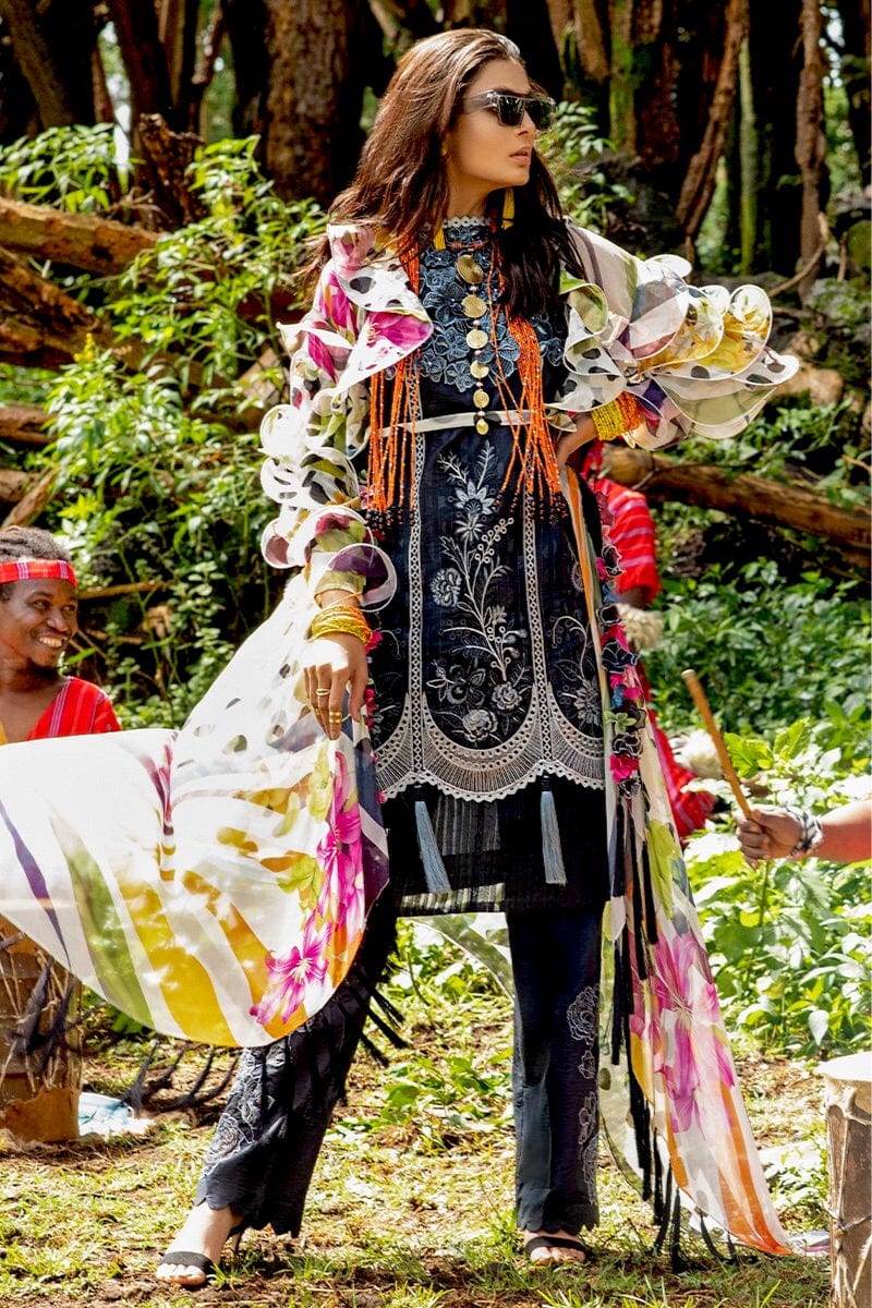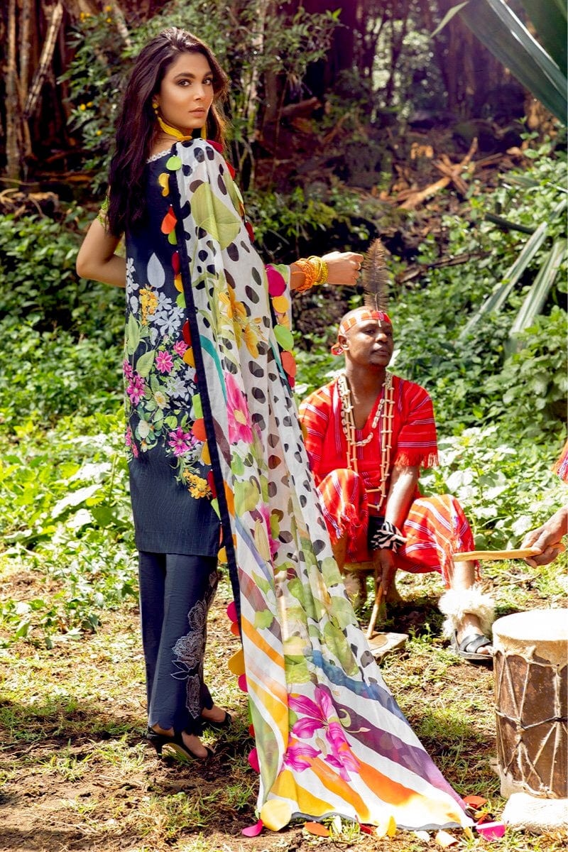 Fabric: Digital Print Chikan Embroidered Front Digital Print Back Digital Print Sleeves Embroidered Trouser Patch (2) Embroidered 3D Flowers Pearls for Finishing Crochet Lace for Finishing Dyed Trouser Digital Print Chiffon Dupatta |