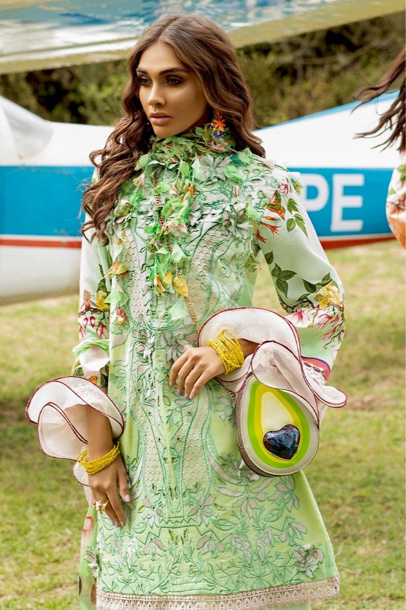 Fabric: Digital Print Chikan Embroidered Front Digital Print Back Digital Print Sleeves Embroidered Trouser Border Embroidered 3D Flowers Crochet Lace for Finishing Dyed Trouser Digital Print Silk Dupatta |