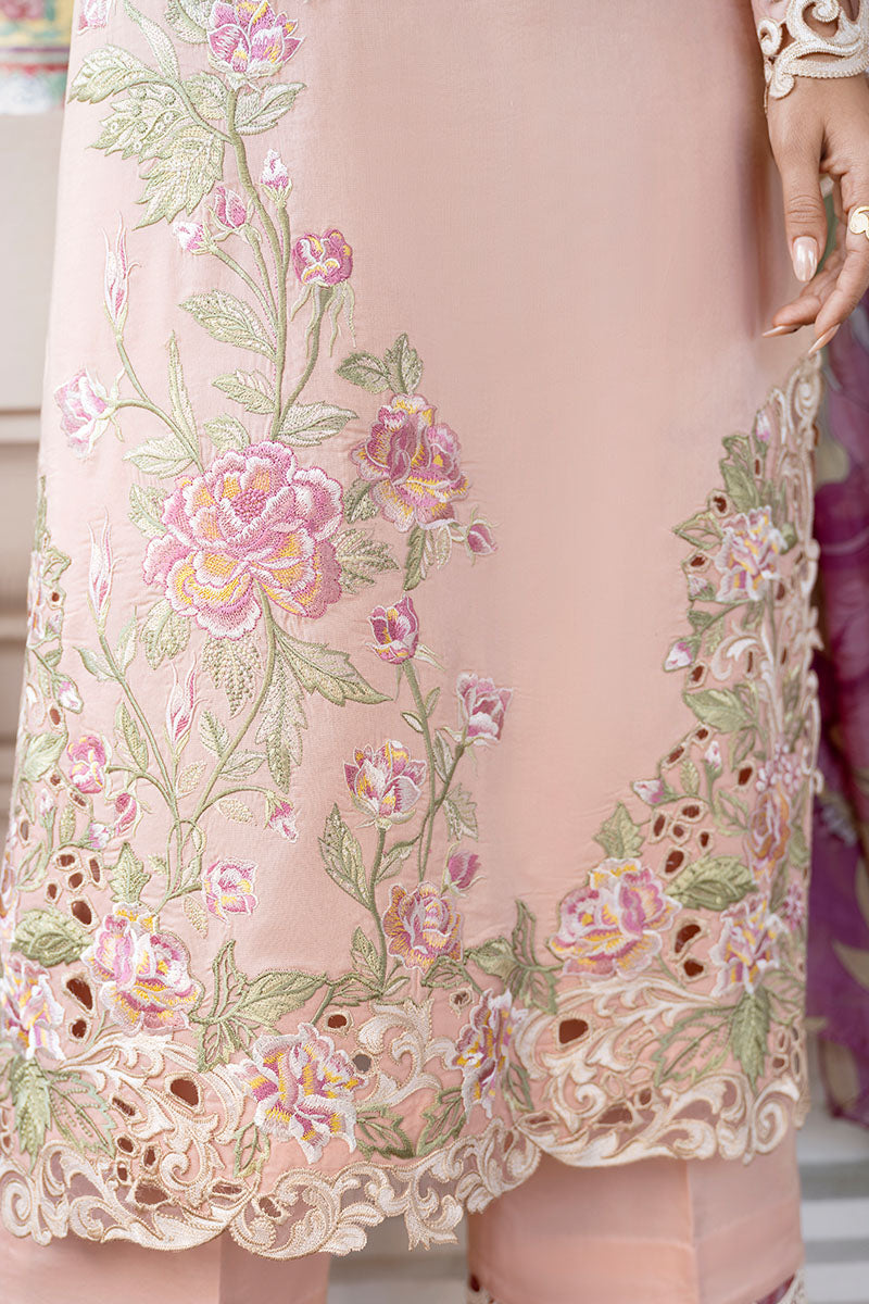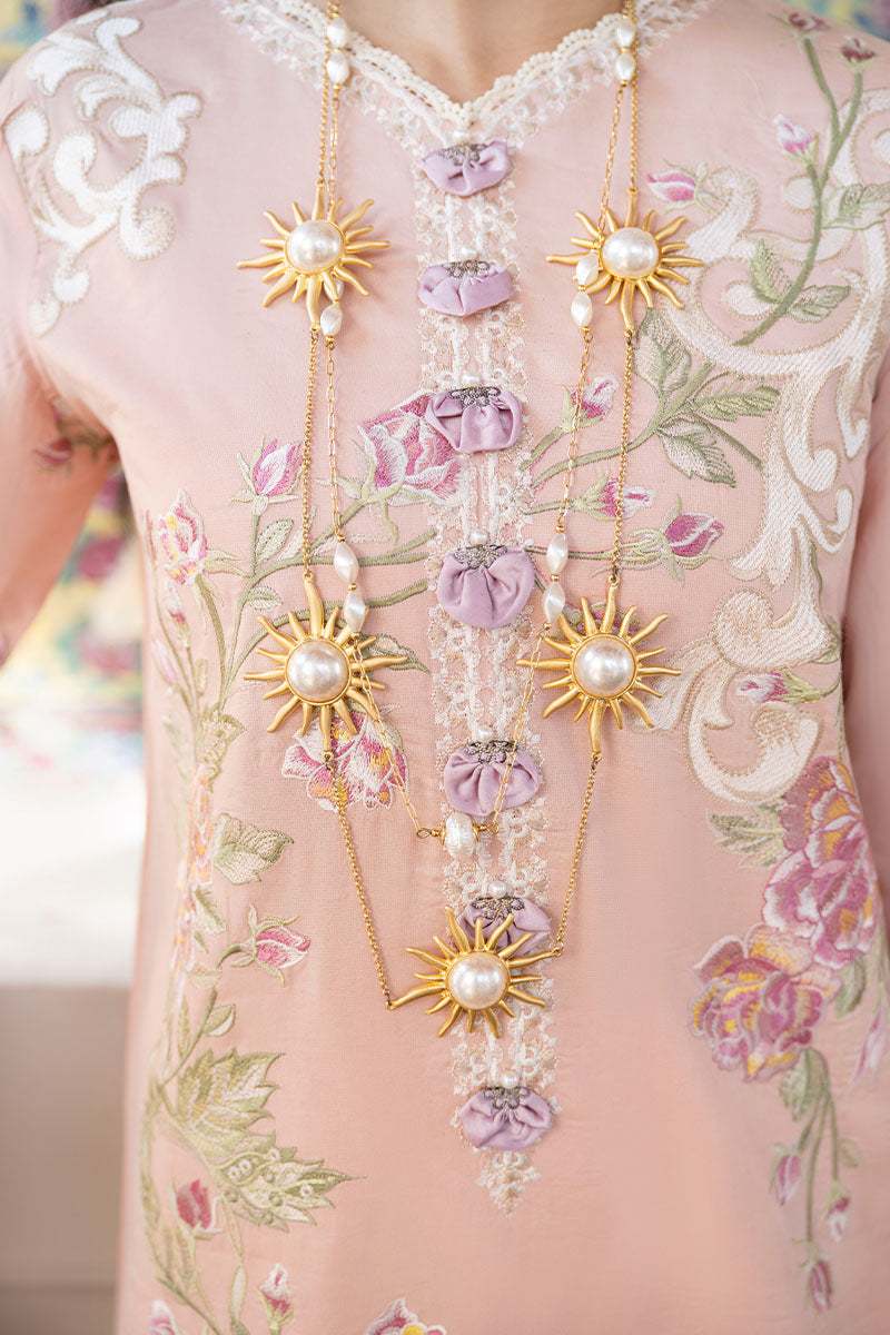 FATIHAH is an exquisite design curated on a gorgeous blush pink. The beauty of the attire is embedded in the floral embroideries. Intricate details such as features embroidered panels, laser cuts, and playful tassels add the finesse that the ensemble is made for. The delicate crochet lace and silk tassels add the perfect touch of elegance. You'll feel like a true fashionista in this outfit