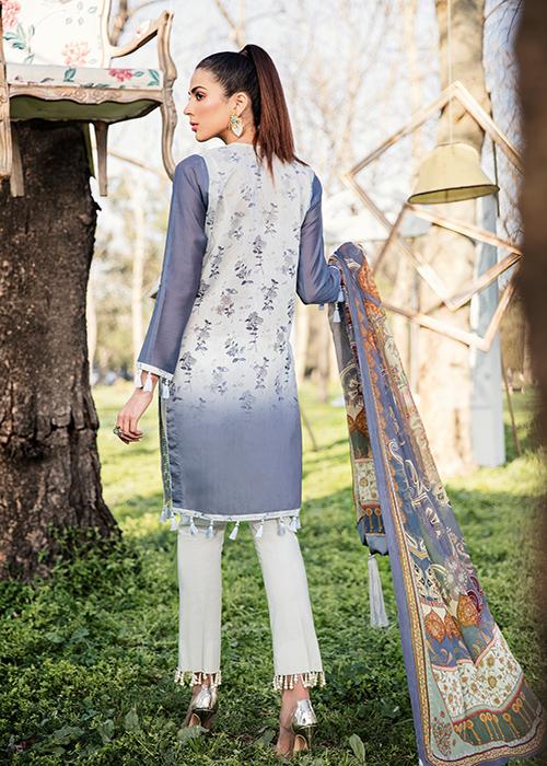 Fabric: Schiffli Embroidered Tie & Dye Front Digital Printed Back Plain Sleeves Digital Printed Chiffon Dupatta Dyed Trouser |