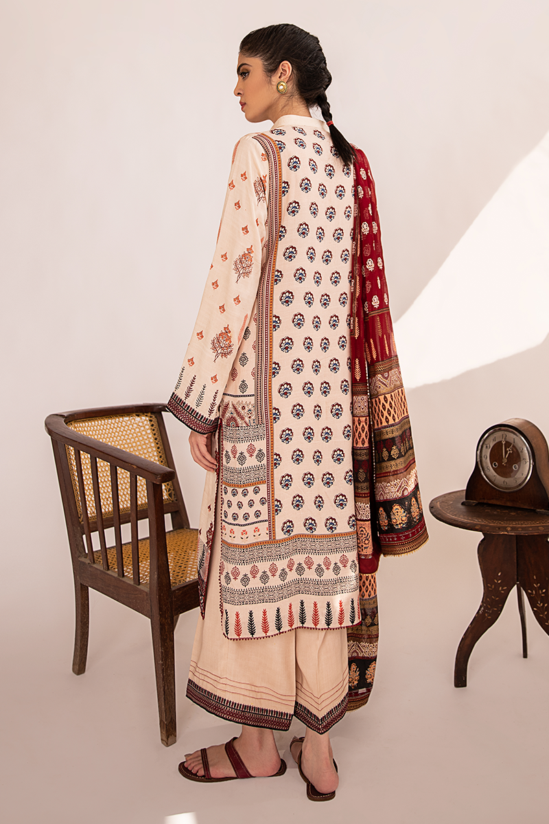 Fabric:Embroidered Front Embroidered Front Border Digital Printed Back Block Printed Sleeves Embroidered Neckline Embroidered Lace for Sleeves and Trouser Block Printed Chiffon Dupatta Plain Trouser |