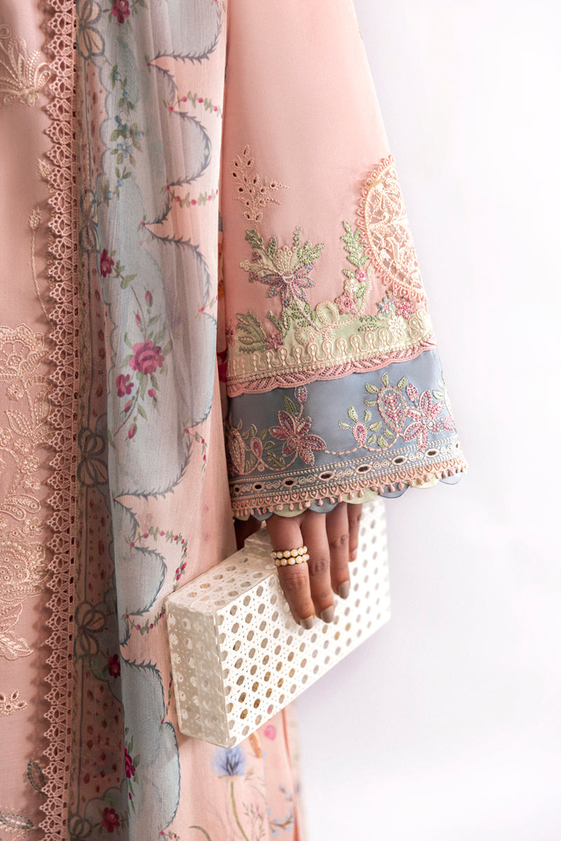 Summary: Embrace effortless elegance with the Qalamkar Qlinekari Lawn Suit – DC-11 Hedi. This beautiful peach-colored Pakistani suit is crafted from premium lawn fabric, offering a soft and breathable feel, perfect for the spring/summer season. The shirt features exquisite Chikankari embroidery on the center panel, sleeves, and hem, adding a touch of traditional charm. The delicate floral patterns enhance the overall appeal, making it an ideal choice for daily wear. The ensemble is complemented by a digitally printed chiffon dupatta and plain cotton trousers, creating a harmonious balance of style and comfort. This unstitched suit allows you to customize the fit and style according to your preference. Experience the perfect blend of traditional craftsmanship and contemporary design with this stunning Qalamkar creation. Add a touch of sophistication to your wardrobe with this must-have Pakistani suit.