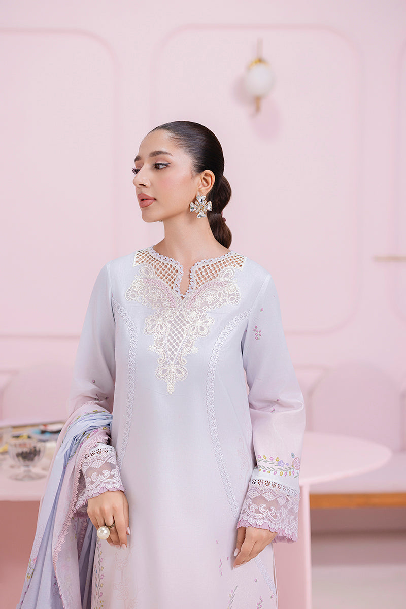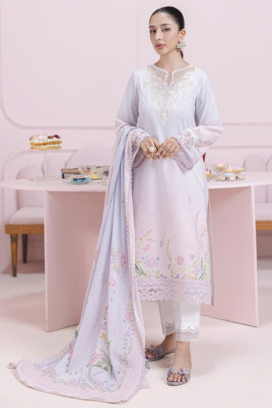 Summary: The Qalamkar QPrints Lawn Vol-2 EM-01 (B) BLAIR presents a sophisticated take on daily wear. This unstitched Pakistani lawn suit showcases a beautiful off-white shirt, creating a canvas of understated elegance. Crafted from high-quality lawn fabric, the shirt promises breathability and comfort, making it ideal for warmer seasons. The design features an embroidered neckline and embroidered borders on the front and sleeves, adding a touch of delicate craftsmanship to the ensemble. The digital print adds a subtle charm to the shirt without overwhelming the overall aesthetic. This versatile suit is perfect for creating a variety of looks, from casual everyday wear to slightly more dressed-up occasions. Pair it with sandals for a relaxed daytime look or dress it up with heels and statement jewelry for an evening out. Experience the perfect blend of comfort and style with this must-have addition to your wardrobe. The suit comes unstitched, allowing you to customize it to your individual preferences and measurements for a truly personalized fit.