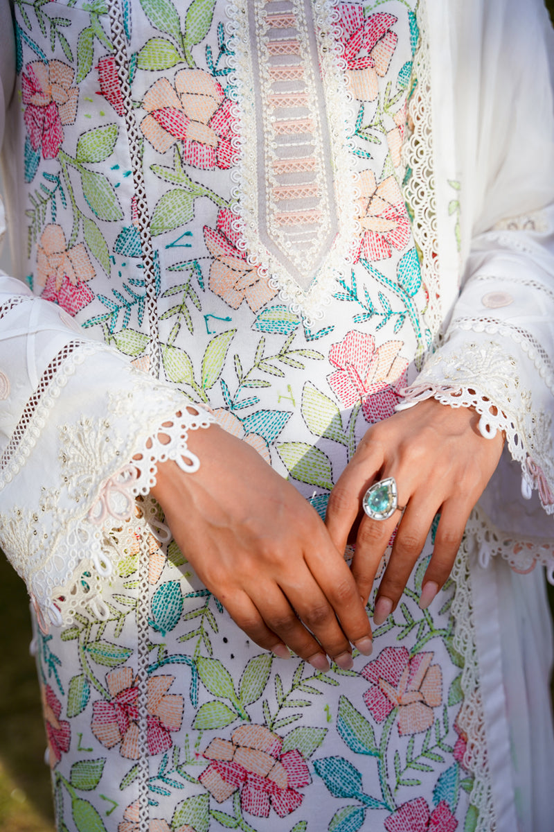 Fabric: Shirt Front with Kacha Tankka Embroidered Embroidered Neckline Embroidered Border (Front & Back) Back and Sleeves Made on Plain Fabric Embroidered Sleeves Patch Embroidered Lace (Sleeves) Dupatta Kacha Tankka Embroidered Dupatta Embroidered Dupatta Pallu Trouser Plain Trouser Fabric Details Shirt: Lawn Trouser: Lawn Dupatta: Chiffon Disclaimer: Product Color May Slightly Vary Due to Photographic Lighting Sources or Your Monitor Settings |
