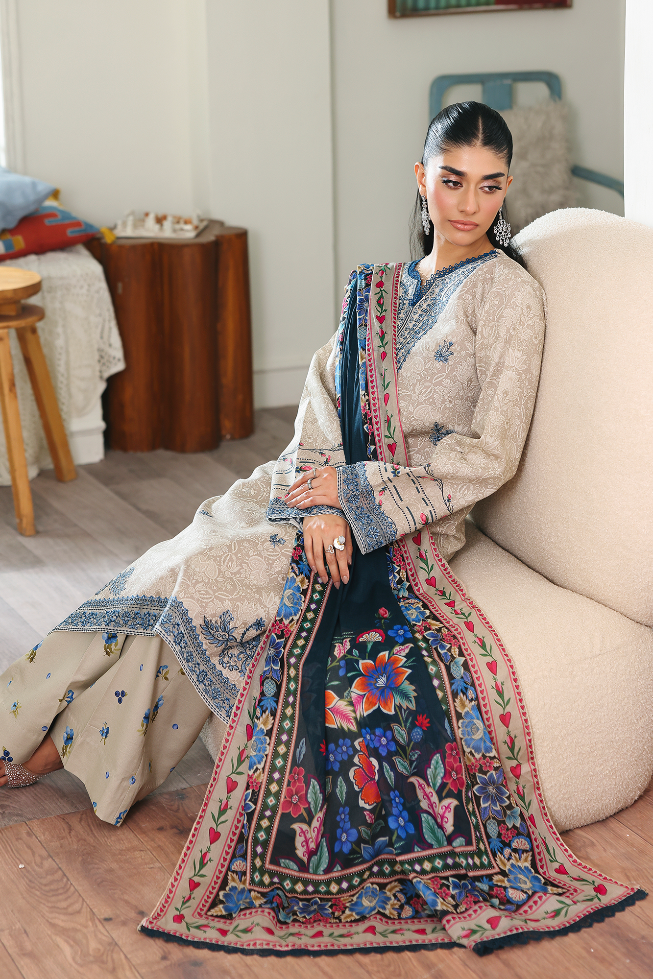 Fabric: Embroidered & Printed Lawn Front Digital Printed Lawn Sleeves & Back Embroidered Lace for Sleeves Embroidered Hem Border Digital Printed Cotton Trouser Digital Printed Primium Voil Dupatta |