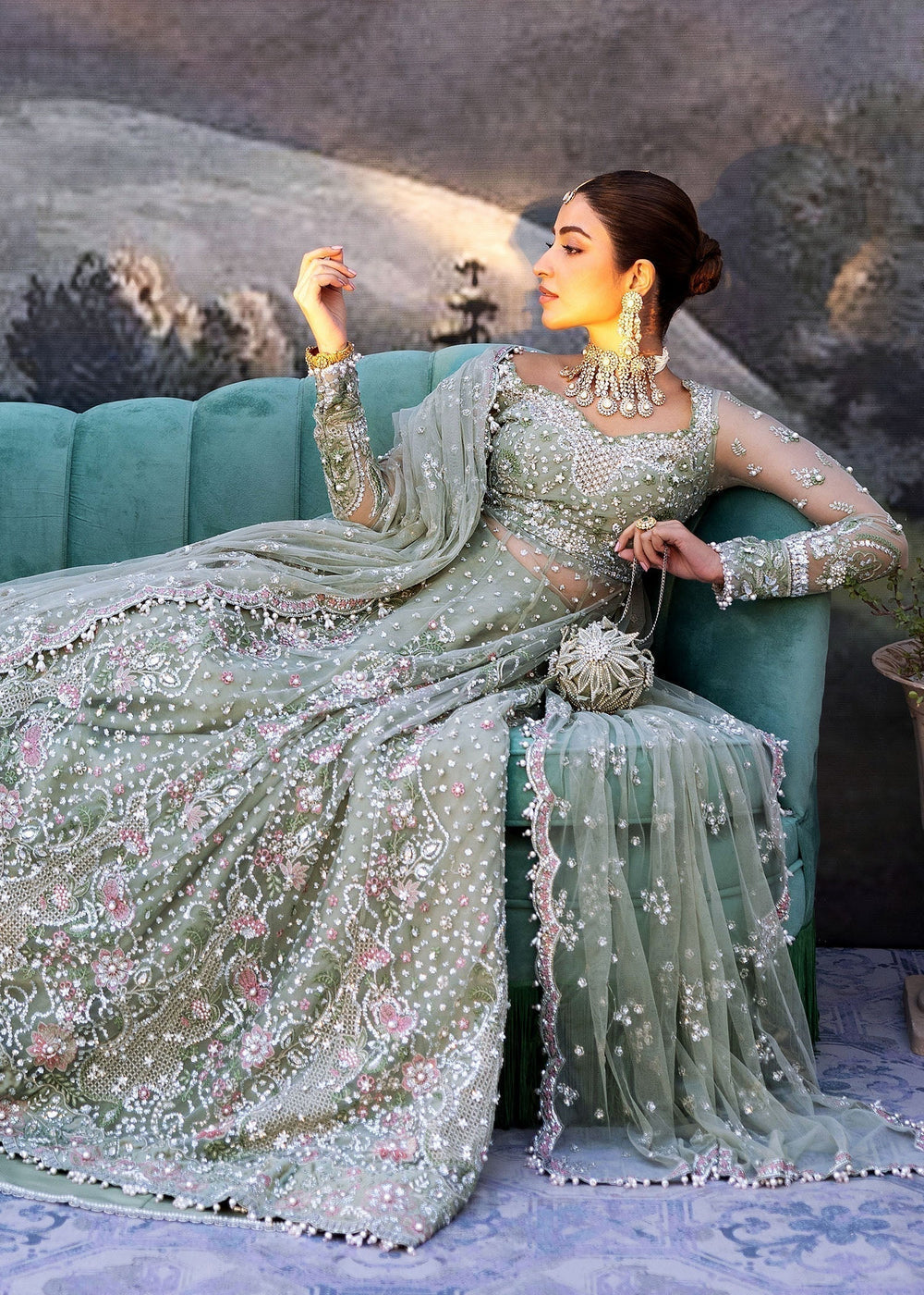 Fabric: Handworked Net Front Bodice - 1 Pc Embroidered Net Border For Front And Back Bodice - 1.33 Meter Embroidered Net Back Bodice - 1 Pc Handworked Net Front Panels - 6 Panels Embroidered Net Back Panels - 6 Panels Handworked Net Sleeves - 2 Sleeves Handworked Net Sleeve Borders - 2 Pcs Embroidered Net Dupatta - 3 Meter Embroidered Dupatta Borders On Charmeuse Silk - 8 Meter Handworked Gown Border On Charmeuse Silk Front - 2 Meter Embroidered Gown Border On Charmeuse Silk Back - 2 Meter Dyed Silk Trouser Fabric - 4 Yards Dyed Silk Inner Slip - 2 Yards |