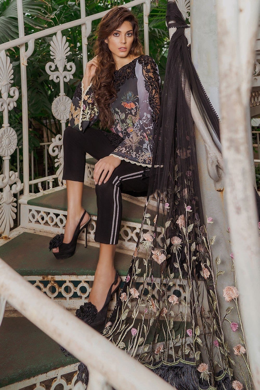 Fabric: Printed Front, Back, Sleeves Embroidered Net Dupatta Embroidered border patch Embroidered Patches Embroidered sleeve lace Plain Dyed Trouser |