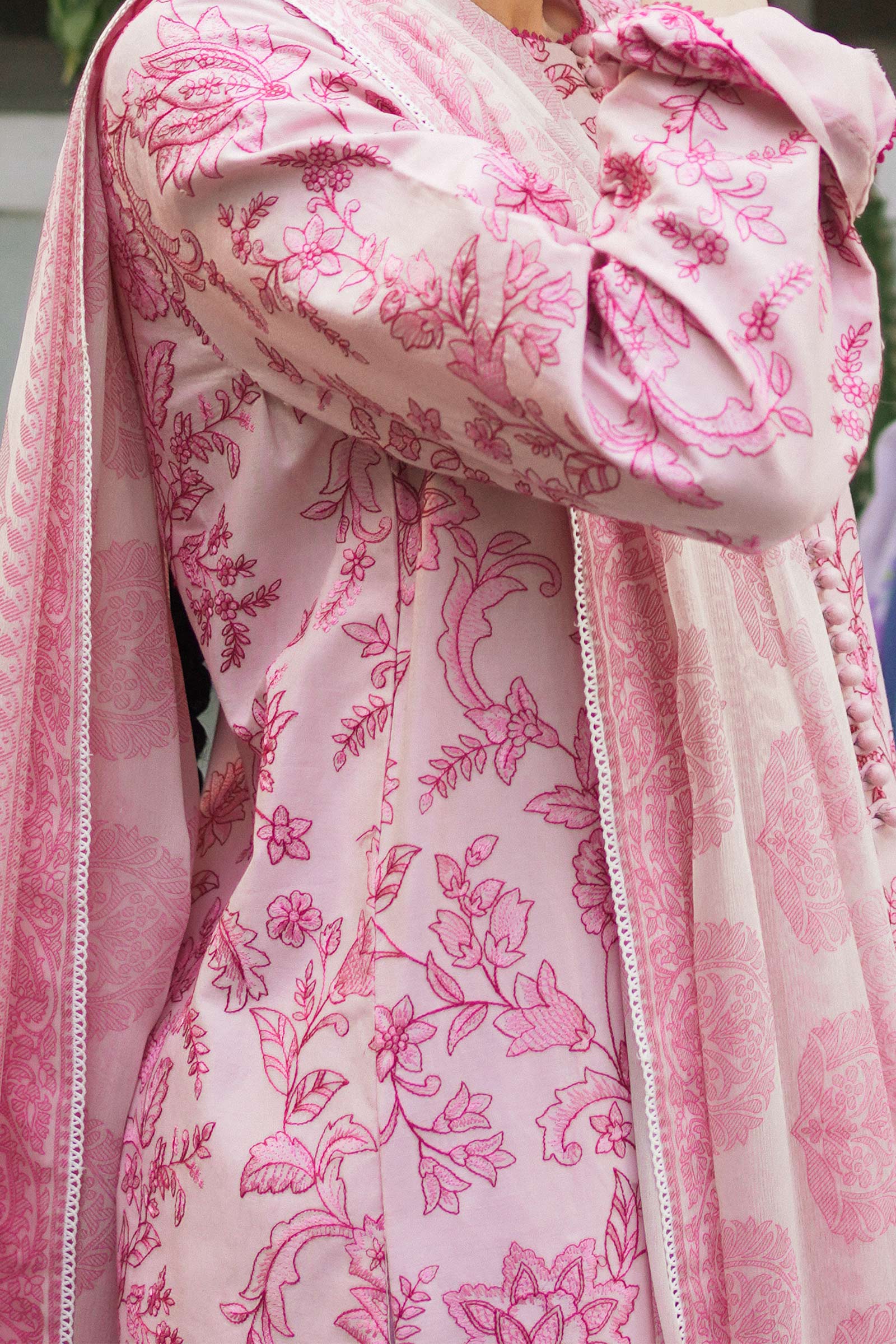 Fabric: Embroidered Shirt Front, Back and Sleeves 2.5 Yards Embroidered Patti for Front, Back and Sleeves 5 Yards Printed Chiffon Dupatta 2.6 Yards Plain Cambric Trouser 2.15 Yards |