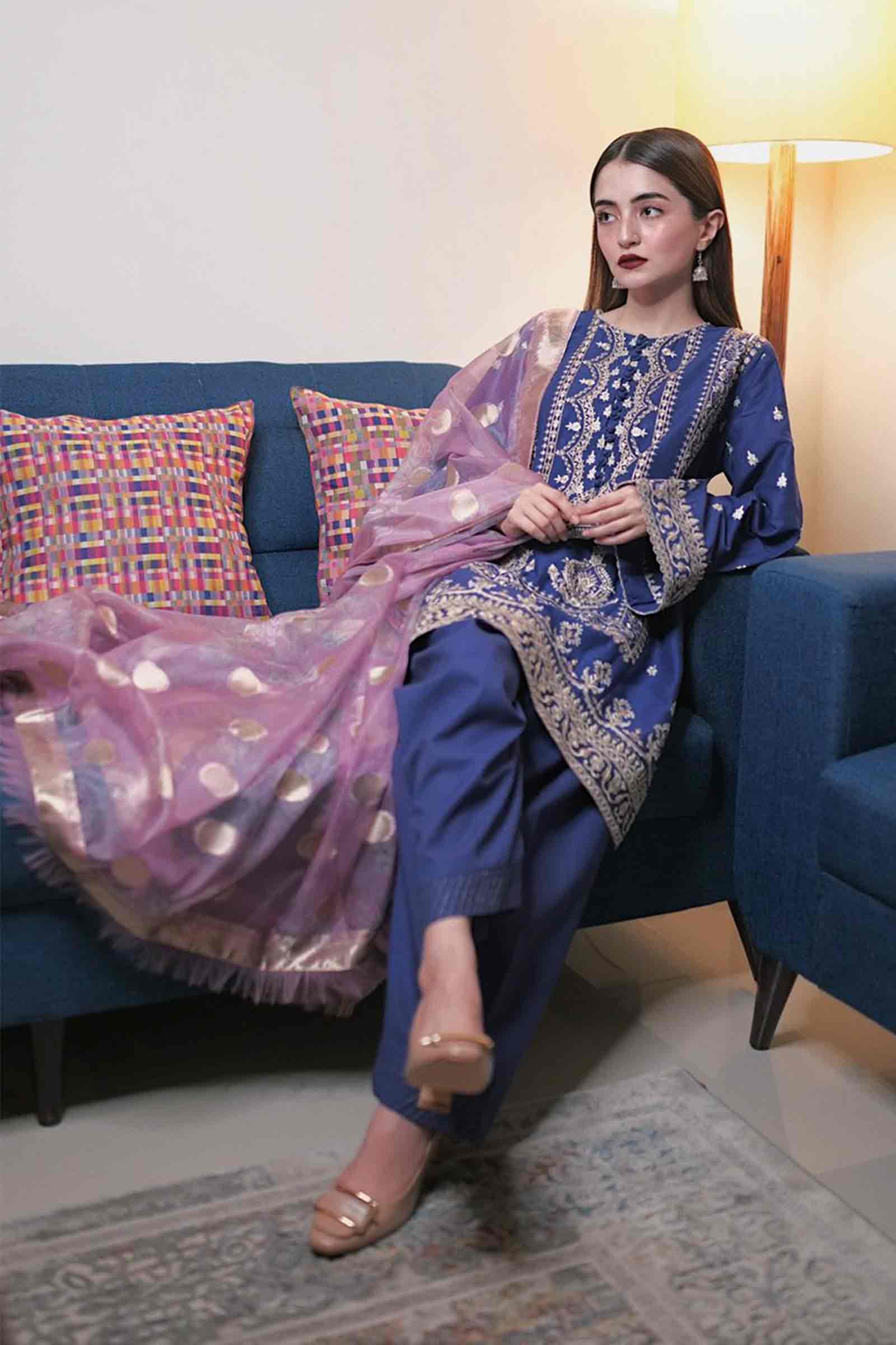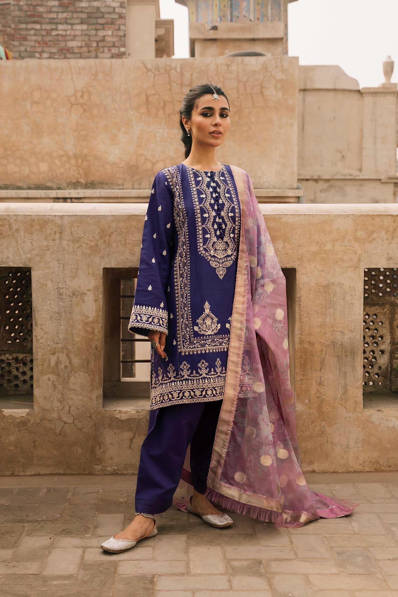 Fabric: Embroidered Front 0.7 Yard Embroidered Back and Panel 1.6 Yards Embroidered Sleeves 0.7 Yard Embroidered Motif (1) Embroidered Border 1.6 Yards Jacquard Organza Printed dupatta 2.6 Yards Cambric Trouser 2.15 Yards |
