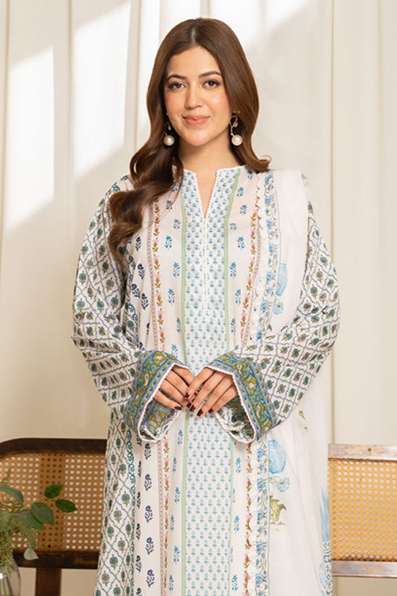 Fabric: Shirt: PRINTED LAWN SHIRT: 3 MTR Dupatta: PRINTED VOILE DUPATTA: 2.5 MTR Trouser: PRINTED CAMBRIC TROUSER: 2.5 MTR |