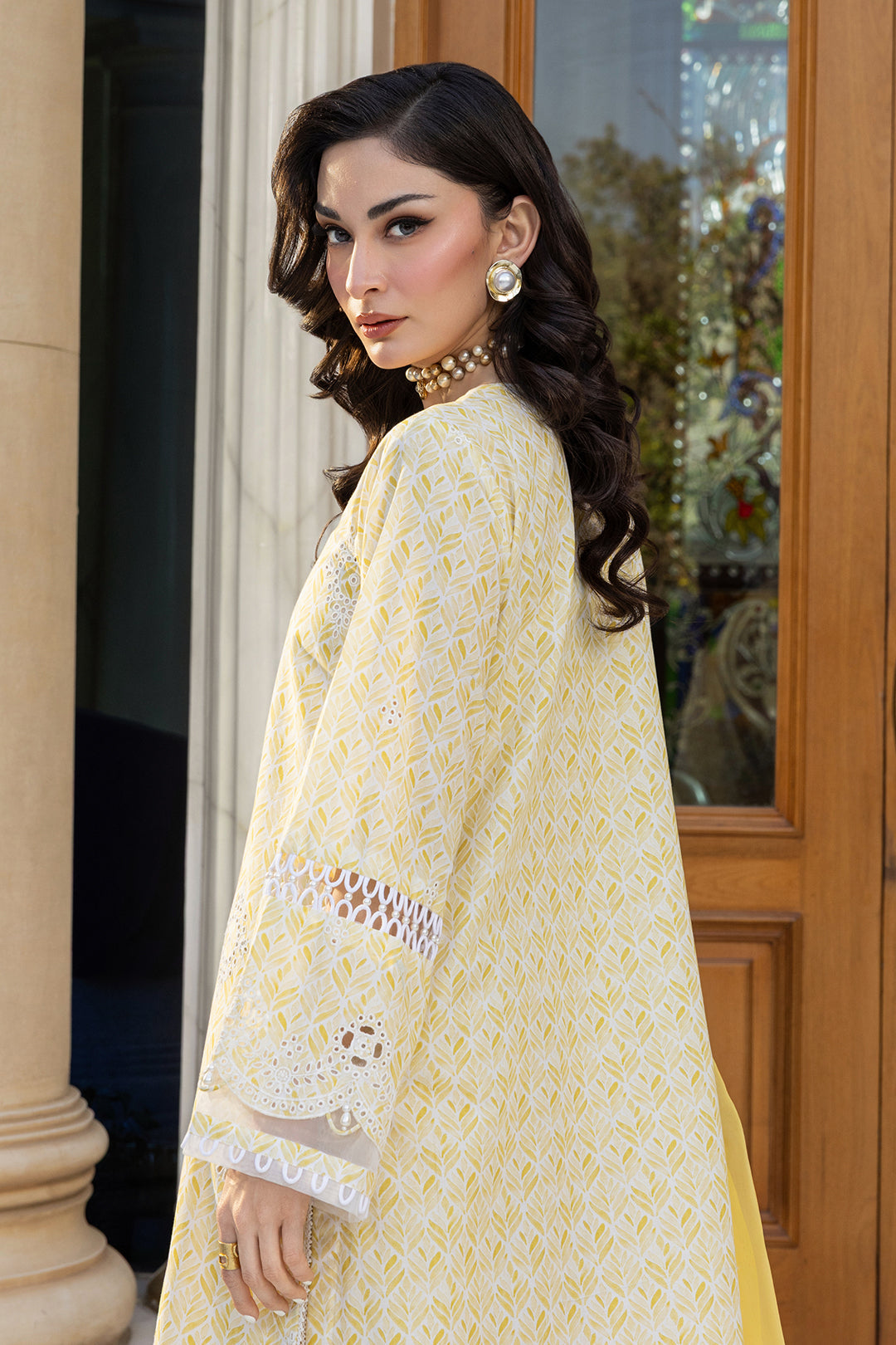 Summary: Radiate elegance in this Zellbury Pakistani suit, a masterpiece of festive wear. The ensemble is centered around a gorgeous cambric shirt in a vibrant lemon yellow, making it a perfect Spring/Summer outfit. The kameez is exquisitely detailed with traditional white chikankari embroidery, showcasing timeless Pakistani craftsmanship. The bright yellow color makes this ethnic wear an excellent choice for celebratory events like a Haldi ceremony or Eid ul-Fitr. This unstitched suit allows for custom tailoring, ensuring a flawless fit. Ideal for those seeking a sophisticated yet festive look for parties and formal gatherings.