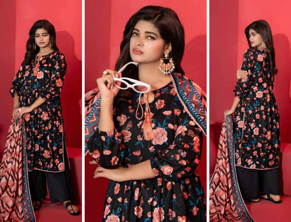 Summary: Step out in style with this elegant black Pakistani Suit from Zesh. The main kameez features a beautiful digital floral print over a classic black base, creating a striking yet graceful look. Crafted from premium, breathable airjet Lawn fabric, this unstitched dress material is your ultimate companion for the hot Spring/Summer season. The lightweight nature of the lawn makes it perfectly suited for Daily Wear, offering both comfort and ethnic charm. Complete with a matching printed lawn dupatta, this Pakistani Summer Dress provides a complete, cohesive look. An ideal outfit to shop online for your casual wardrobe updates or everyday elegance.